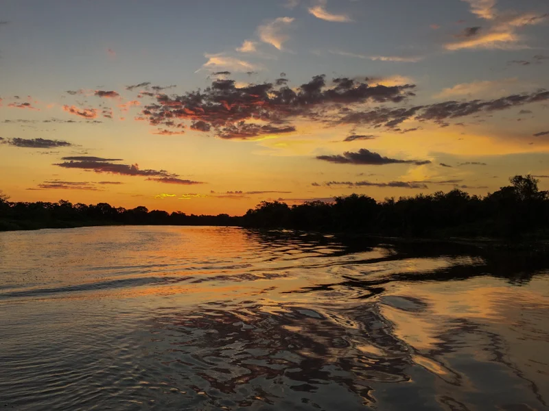 After dinner (the piranha were not the main course, more of a novelty side dish), we set off down river in search of jaguars. We had the most amazing sunset as we cruised along. Once the light had disappeared from the sky, our guides used powerful torches to scan the river banks. On this occasion, we lucked out, no jaguar sightings. We did see heaps of caymans, including one that dived right under our boat. There was also a huge variety of insects, including a beetle the size of a guinea pig that careered into Julie’s leg. Girls have a great ability to exaggerate the size of bugs in the same way that boys do with fish they have caught.