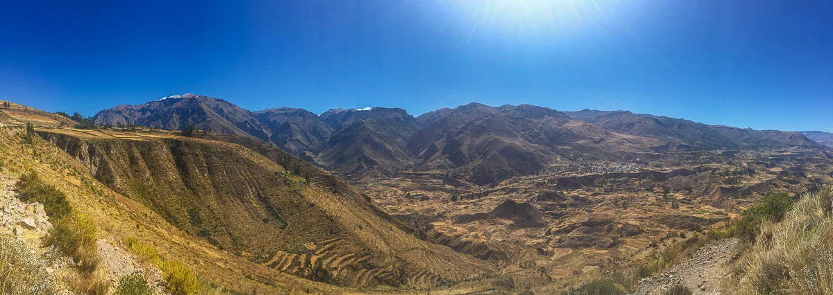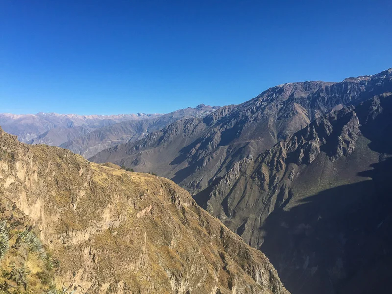 The Colca Canyon is the second deepest canyon in the Peru. With a depth of over 10,000 feet, it’s twice as deep as the Grand Canyon. And that’s very deep; 2 miles deep. If you decided to jump off it would take roughly 30 seconds to hit the bottom. Give or take a second or two. SPLAT.