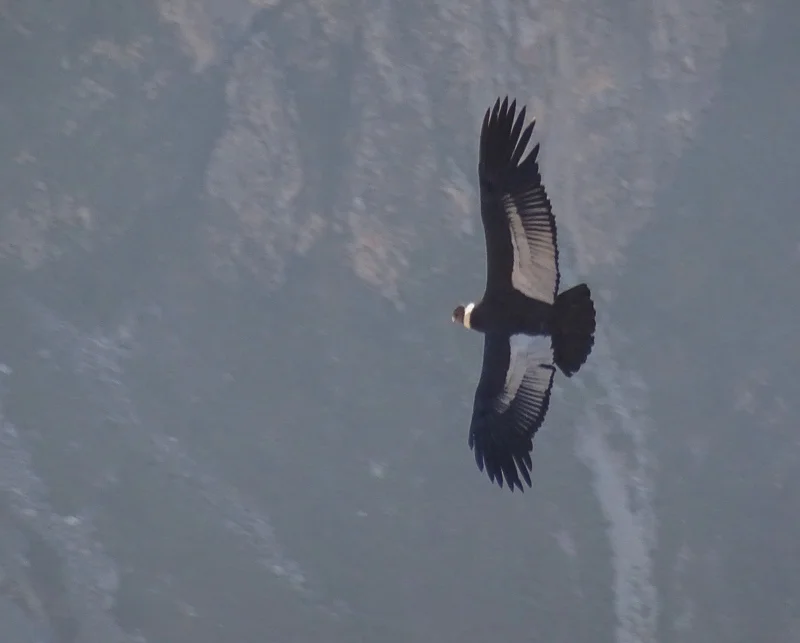 The highlight of the tour came at our next stop, Mirador Cruz del Condor. In fact, we stopped just before the lookout as three huge condors were gliding by on the drafts from the canyon floor. The lookout offered several vantage points to sit and get a glimpses of these ugly but majestic birds. The hour we had there flew by (boom boom).