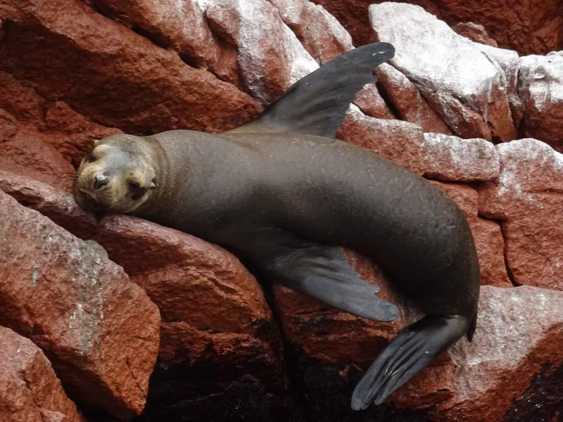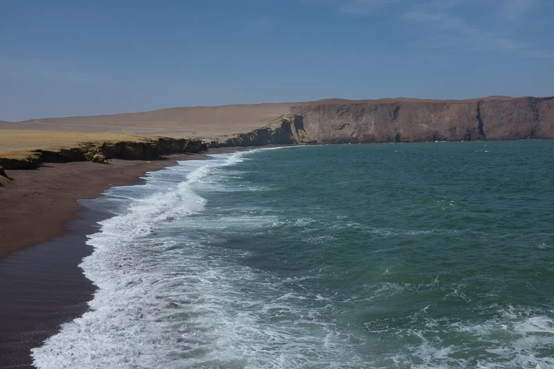 Peru Hop also whisked us around the nearby Paracas National Park. The landscape looks like huge sand dunes but is actually very light coloured rock. There is even a striking red sand beach. Not sunbathing weather though as the wind whisked through.