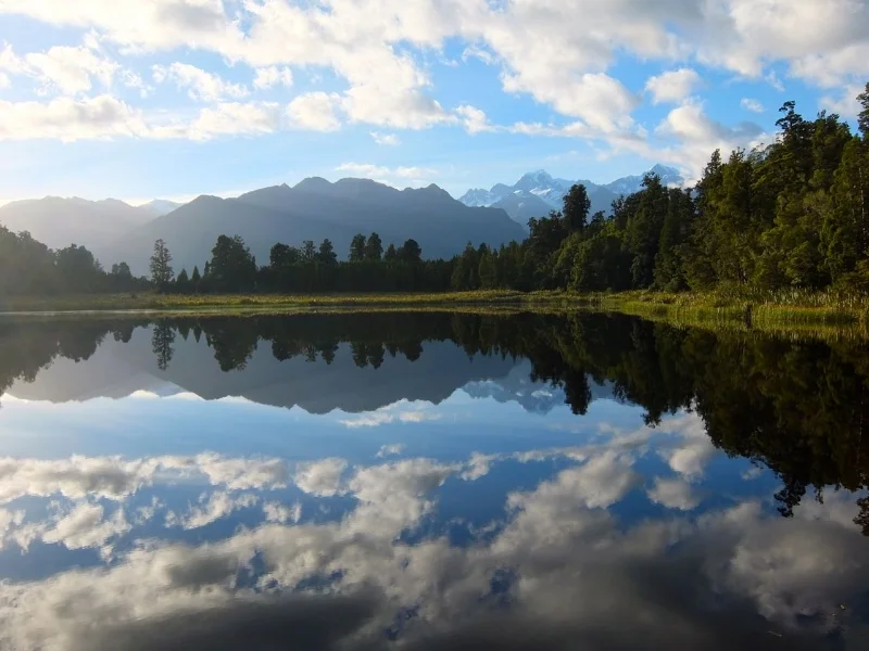 Early morning found us at Lake Matheson. On the right day with no cloud the lake is like a mirror. Stunning view of the Southern Alps and Mount Cook reflecting on the lake. Once the bus load of hyper active teenagers had moved on we almost had the place to ourselves.