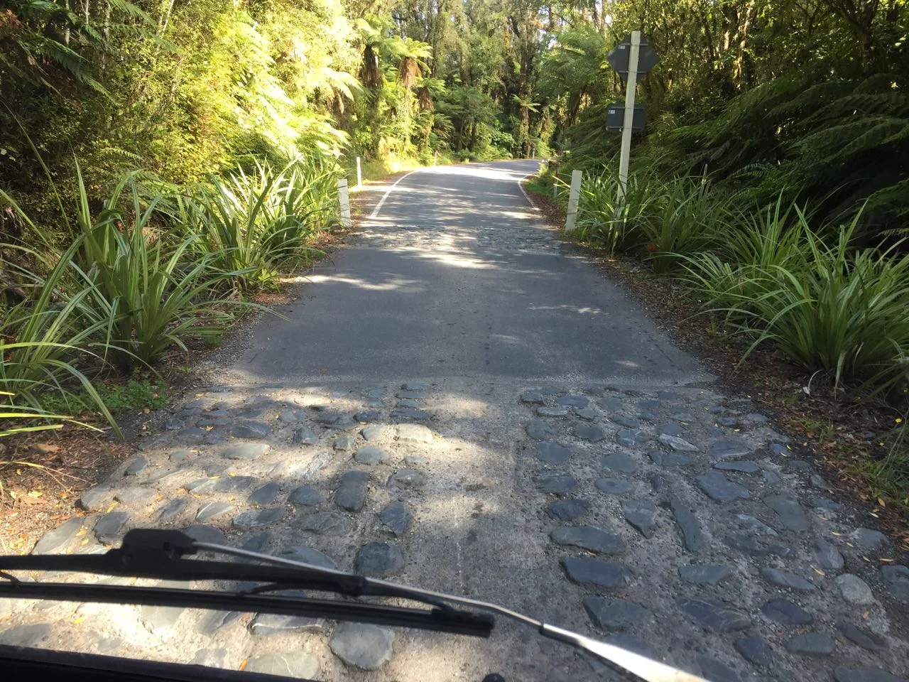 At Franz Josef Glacier we came across humps with bumps. Those crazy DOC (Department of Conservation) guys have totally worked out how to wreak a lowered Kombi. You put speed humps in and then insert rocks into the top of the humps. Mmmmm.